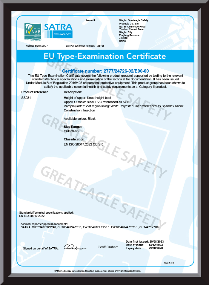 รองเท้าบู๊ทนิรภัยนิ้วเท้าเหล็กและกันด่าง SS032 เป็นรองเท้าป้องกันที่ออกแบบมาสำหรับสภาพแวดล้อมทางอุตสาหกรรมที่หลากหลาย ทำจากวัสดุพีวีซีคุณภาพสูงและมีฟังก์ชั่นความปลอดภัยหลายประการ เหมาะสำหรับความต้องการทำงานประจำวันในอุตสาหกรรมต่างๆ เช่น ปิโตรเลียม การก่อสร้าง การทำเหมือง เคมี เครื่องจักร และการแพทย์ ส่วนบนและพื้นรองเท้าด้านนอกทำจากวัสดุ PVC ซึ่งมีคุณสมบัติกันน้ำ กันน้ำมัน กันกรด และด่างได้ดี พวกเขาสามารถต้านทานการกัดเซาะของของเหลวและสารกัดกร่อนต่าง ๆ ได้อย่างมีประสิทธิภาพและมั่นใจในความปลอดภัยของเท้าของคนงาน